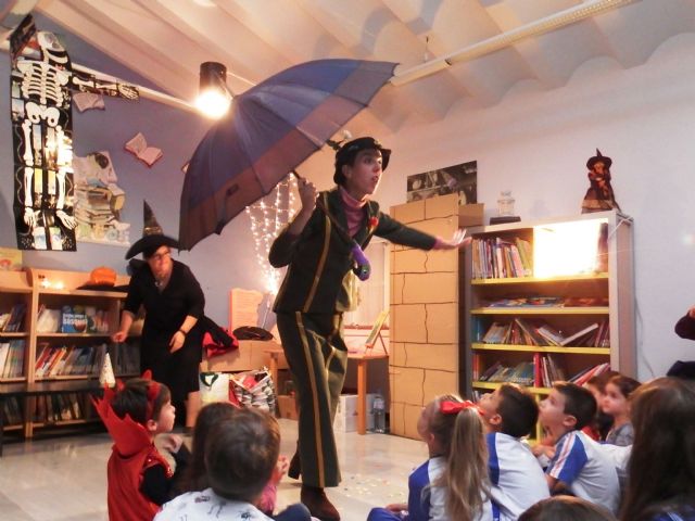 Cuentos en inglés, monstruos y brujas, que entre la narración, el guiñol y presentadora, caracterizada de Mary Poppins,  hicieron surgir el suspense y la sonrisa en las caras del medio centenar de asistentes a la tarde de cuentos.
