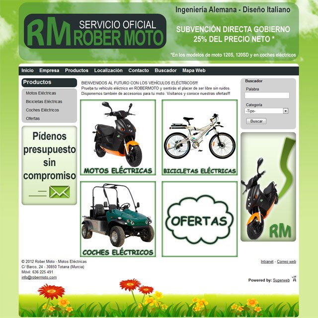 Además, esta empresa, como todas las que han apostado por Superweb -herramienta desarrollada por Totana.com para satisfacer las necesidades personales y/o corporativas de su clientela- ya dispone de dominio propio y dirección de correo electrónico: info@robermoto.com